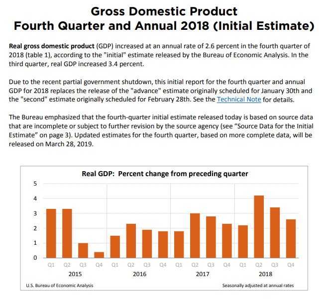 美國經(jīng)濟(jì)數(shù)據(jù)放緩是事實,去年二季度GDP增速還到了4.2%的高位,四季度就下滑到了2.6%,預(yù)計2019年一季度還是繼續(xù)下滑的趨勢。
