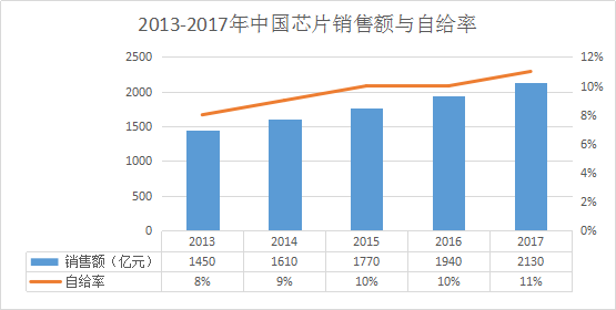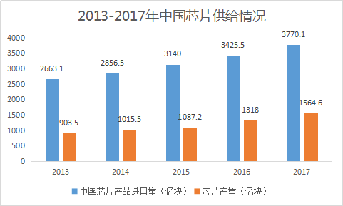 根據(jù)中國半導(dǎo)體協(xié)會與國家統(tǒng)計局統(tǒng)計,中國芯片產(chǎn)量增速自2013至2017,在波動中達到平均15%,年產(chǎn)量也從903億塊增長至1565億塊,但總體來看,中國芯片供給市場仍大量依靠國外進口。2015年芯片進口額超2000億美元,超越了原油和大宗商品,成為中國第一大進口商品。2017年更是達到了2601億美元。